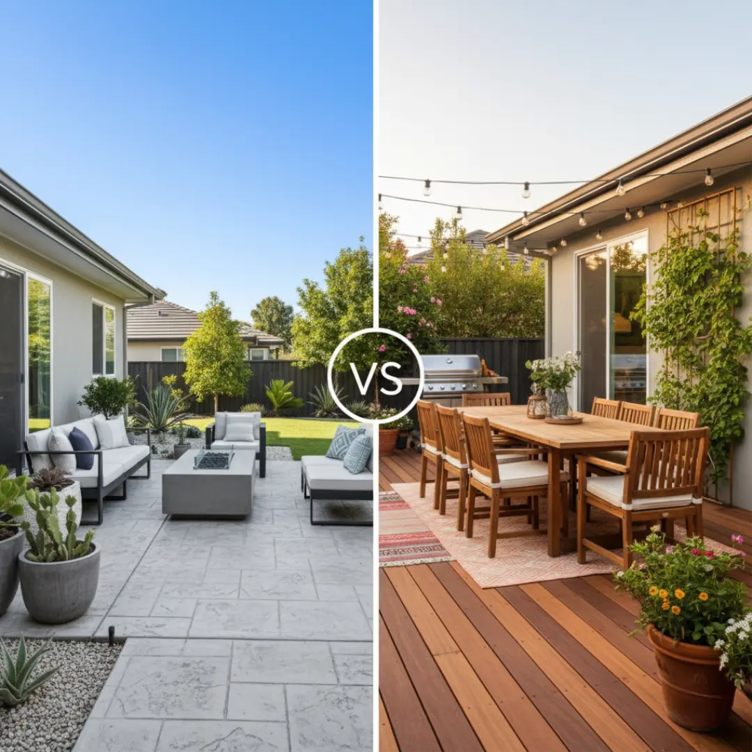 | Feature | Concrete Patio (Finished/Stamped) | Wood Deck (Composite/Hardwood) |