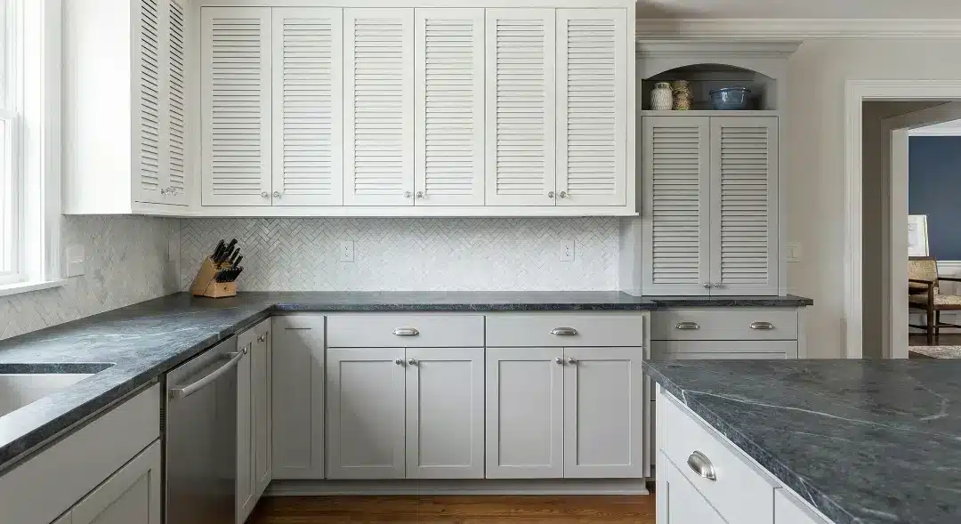 While some bold designs utilize louvered doors for an entire kitchen, we often recommend using them as strategic accents to create visual interest without overwhelming the space.