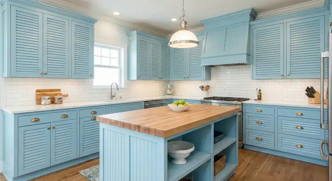 Custom Louvered Kitchen Cabinet Installation in Los Angeles